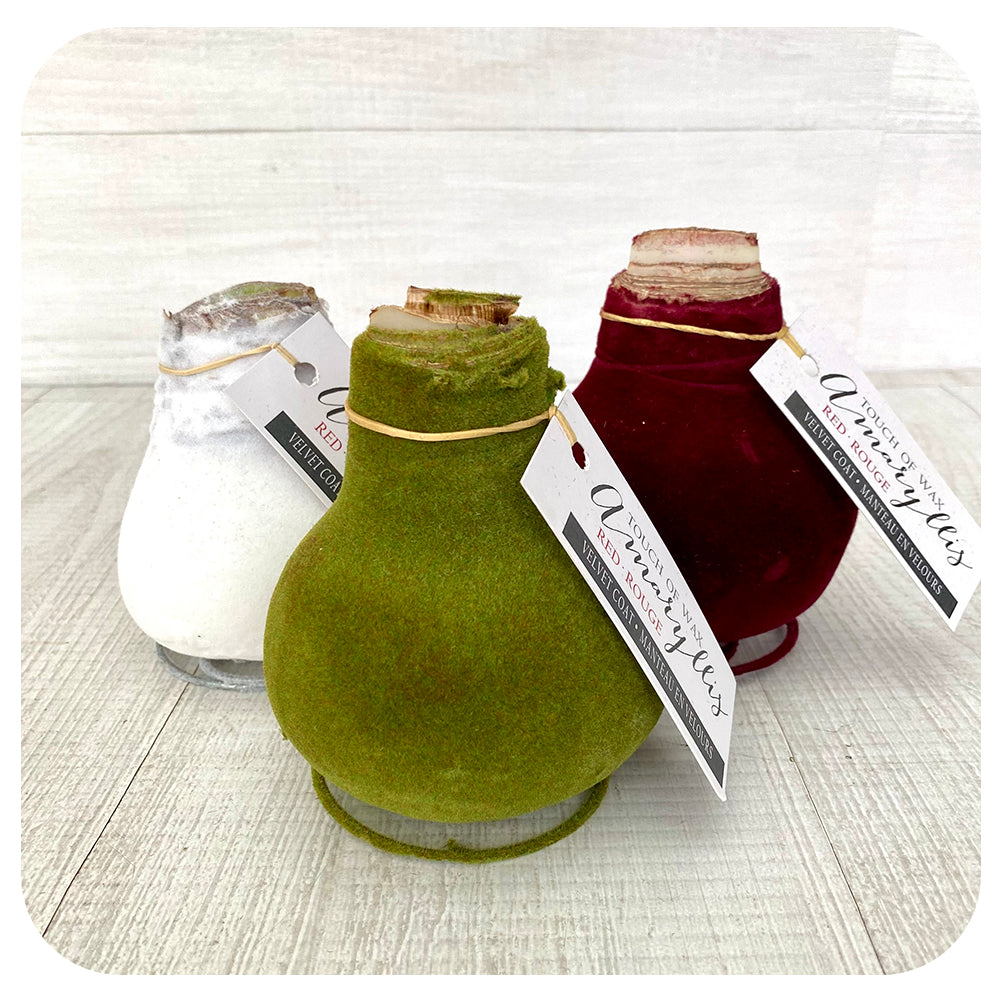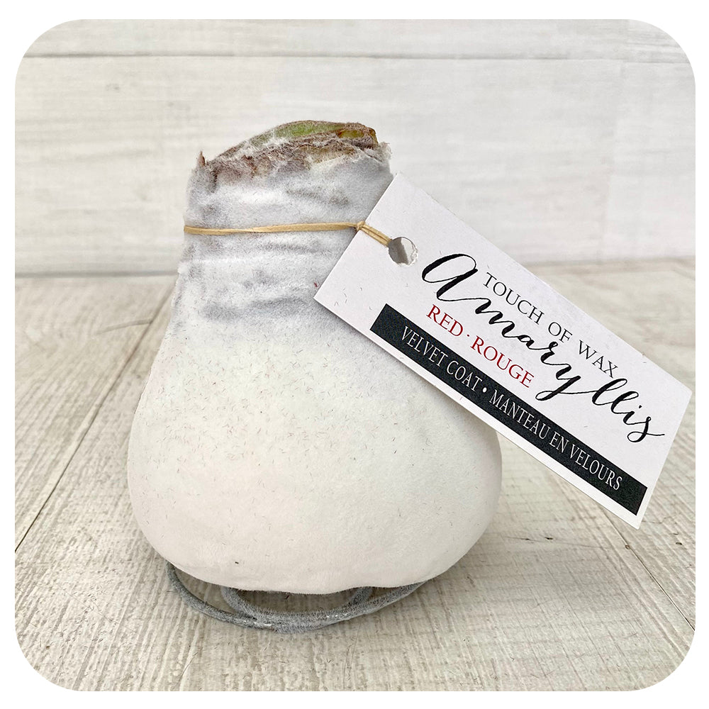 No planting necessary. Dipped and wax and fitted with a stand, these bulbs will produce 2-3 stems of multiple red blooms.